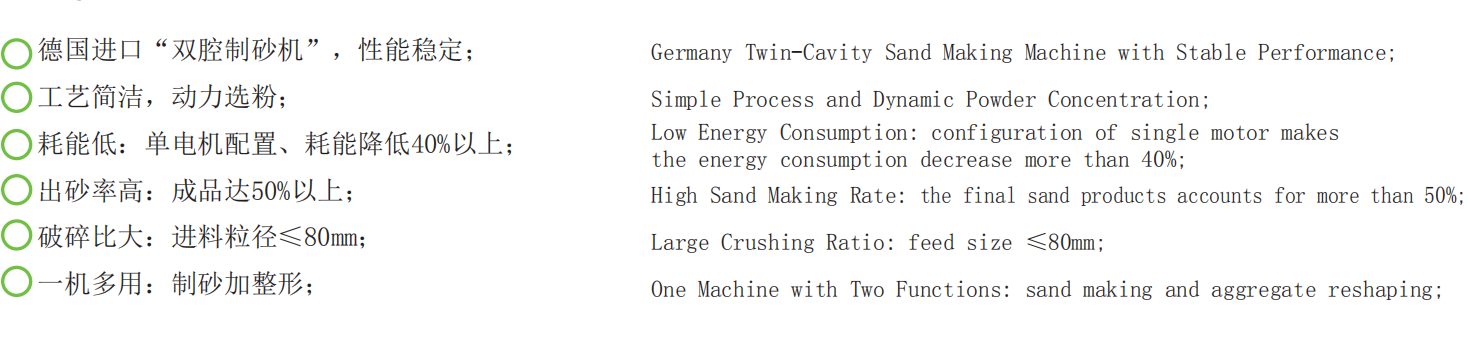 針對混凝土市場需求的“砂石同出”系統(tǒng),使用的是德國原裝的“雙腔”制砂機,使得該系統(tǒng)具有性能穩(wěn)定可靠的優(yōu)勢,除此之外,工藝簡潔、動力選粉,耗能低(單電機配置、耗能降低40%以上)、出砂率高(成品達50%以上)等優(yōu)勢也是市場上的傳統(tǒng)制砂機所不具備的。